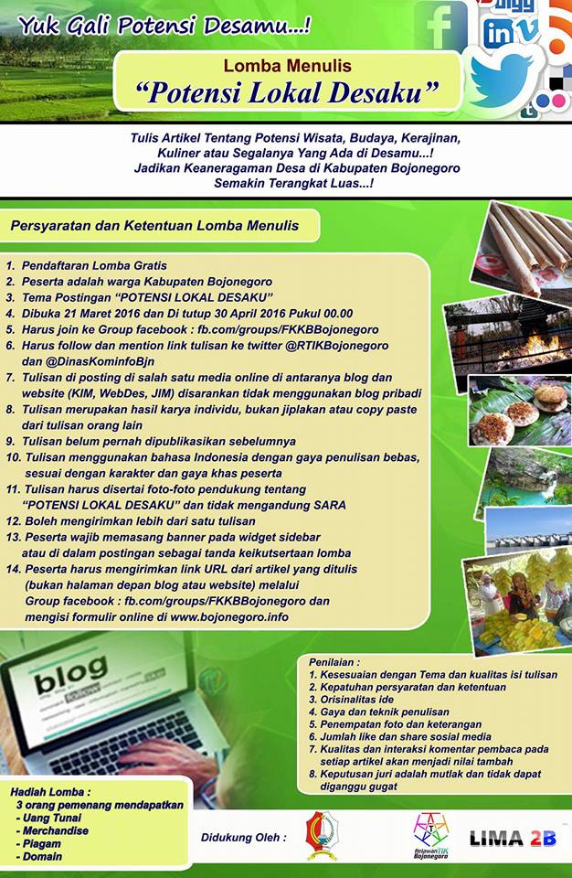 11. Tulisan harus disertai foto-foto pendukung tentang “POTENSI LOKAL DESAKU” dan tidak mengandung SARA
